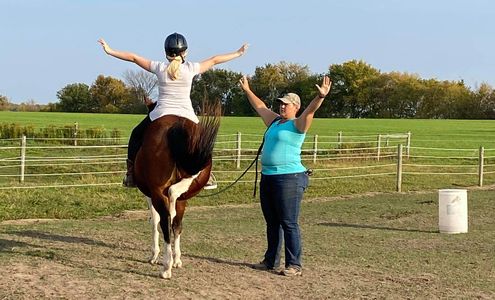 I currently offer private lessons at the Somerset barn, as well as lessons at your location within approximately 60 miles of Ellsworth, WI, traveling between Ellsworth and Hugo. Whether you're working with your own horse or looking to build skills in a one-on-one setting, I’d love to support your journey.